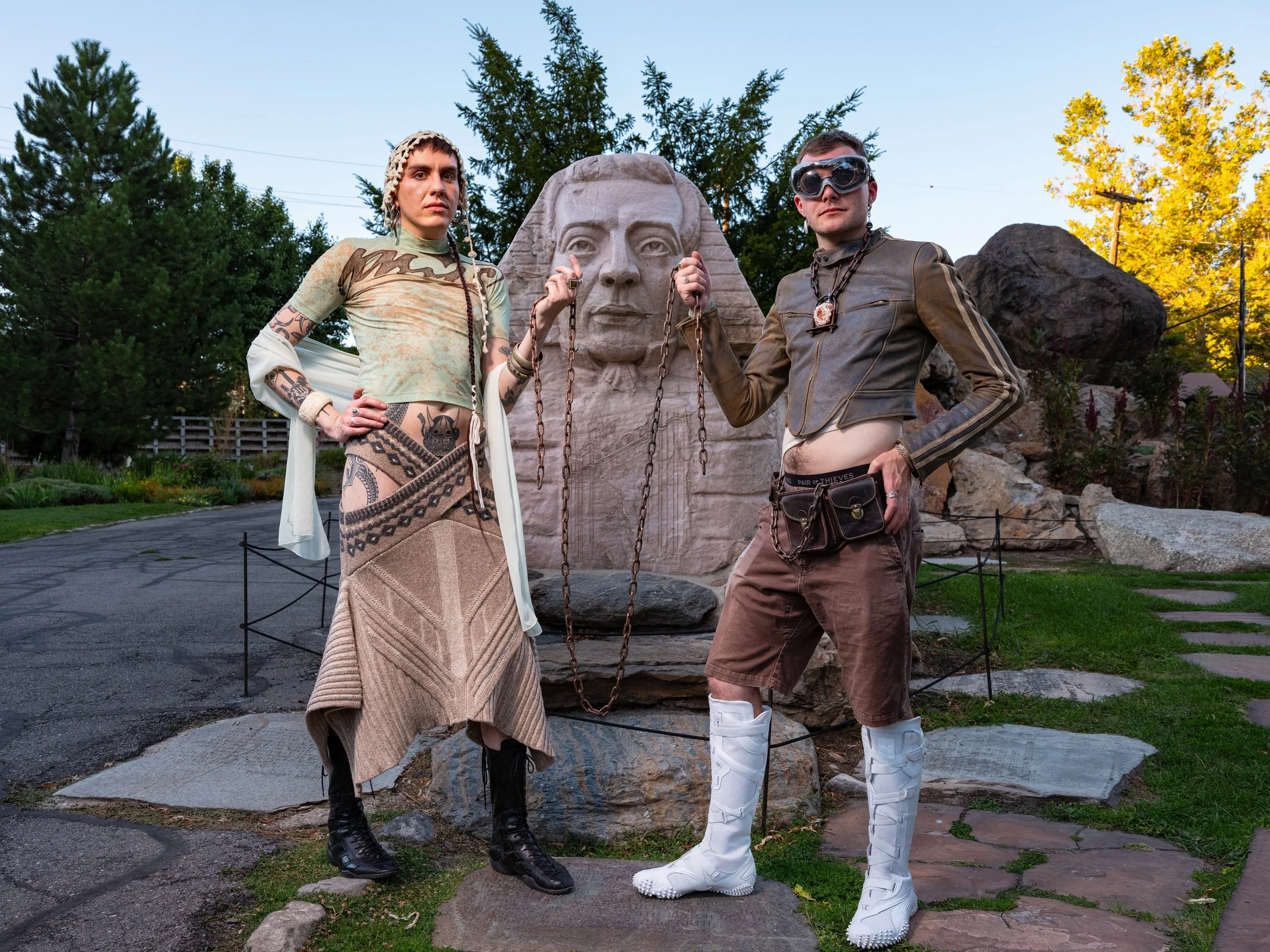 Industrial jewelry and ritual garments for physical and spiritual protection.